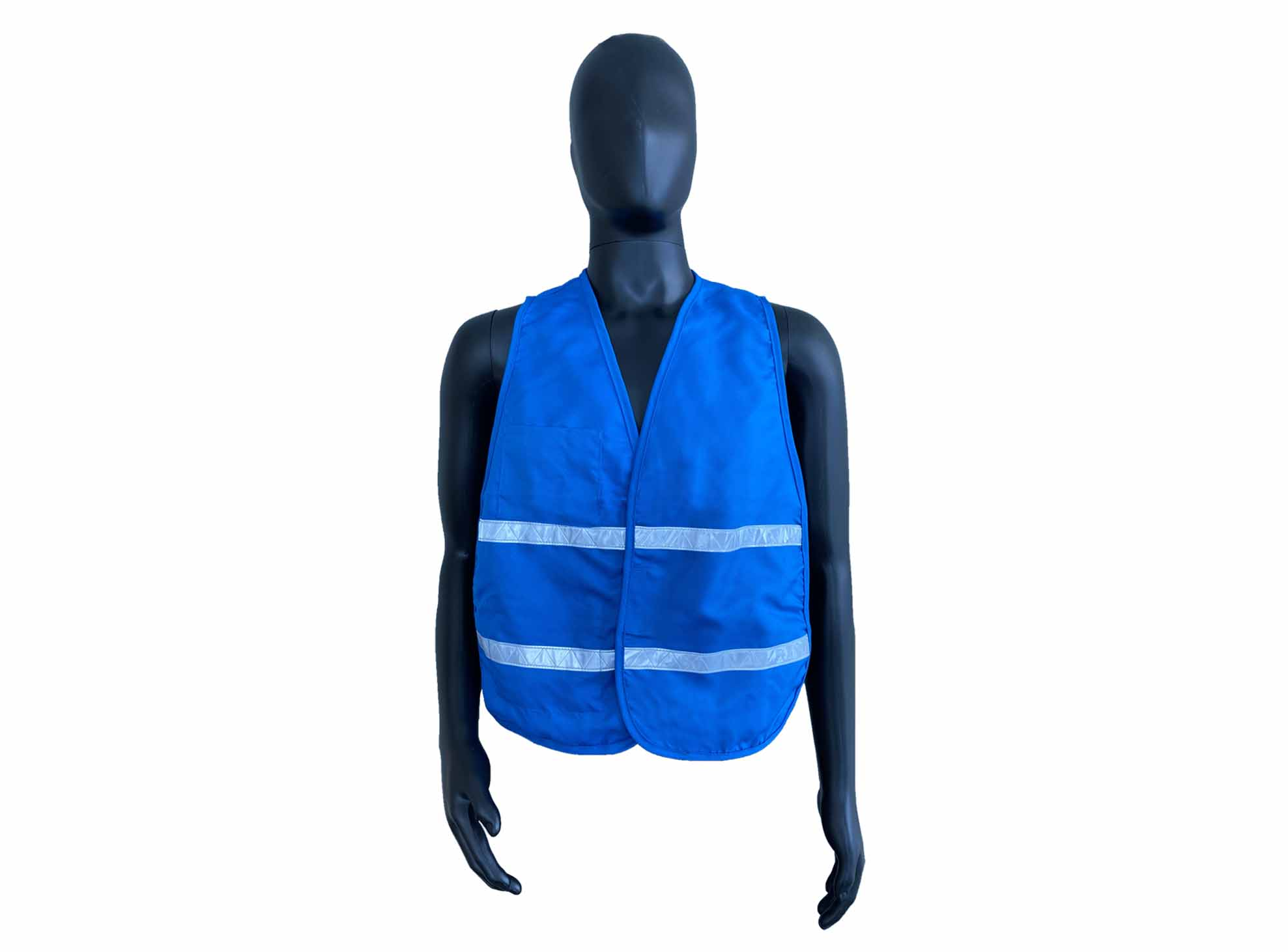 Safety Vests Class I Blue Polyester, 2 Horizontal Reflective Stripes, Elastic Sides & Velcro Front [Regular & Jumbo]
