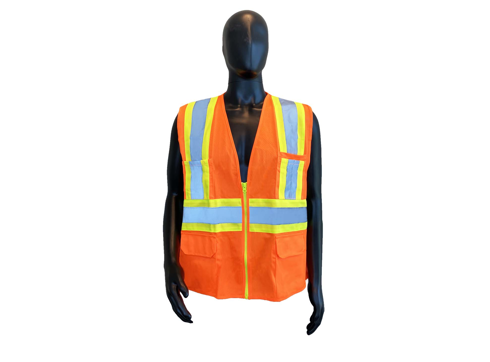 Safety Vests Class II Orange Polyester, Solid Front/Back, 5 Pockets & Zipper Front [size: S-8X]