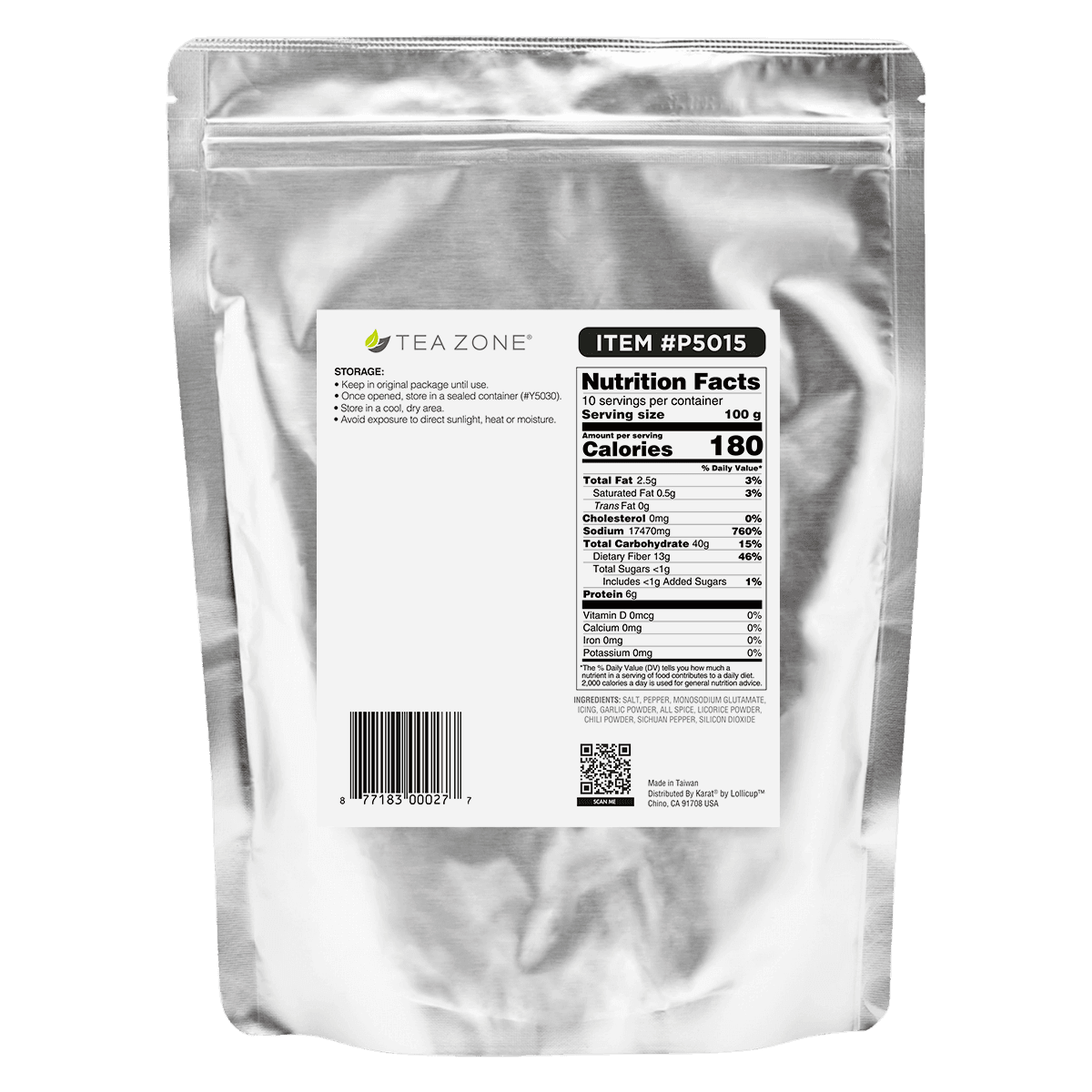 Tea Zone Seasoning Powder consists of pepper, salt, and herbal spices for a simple, but a delectable taste for any recipe. It’s simple seasoning mix that is used to add delectable taste to any food. One common use for it is to season Taiwanese Popcorn Chicken. This bag of seasoning contains everyone that you might need including salt, peppers, and some herbs.