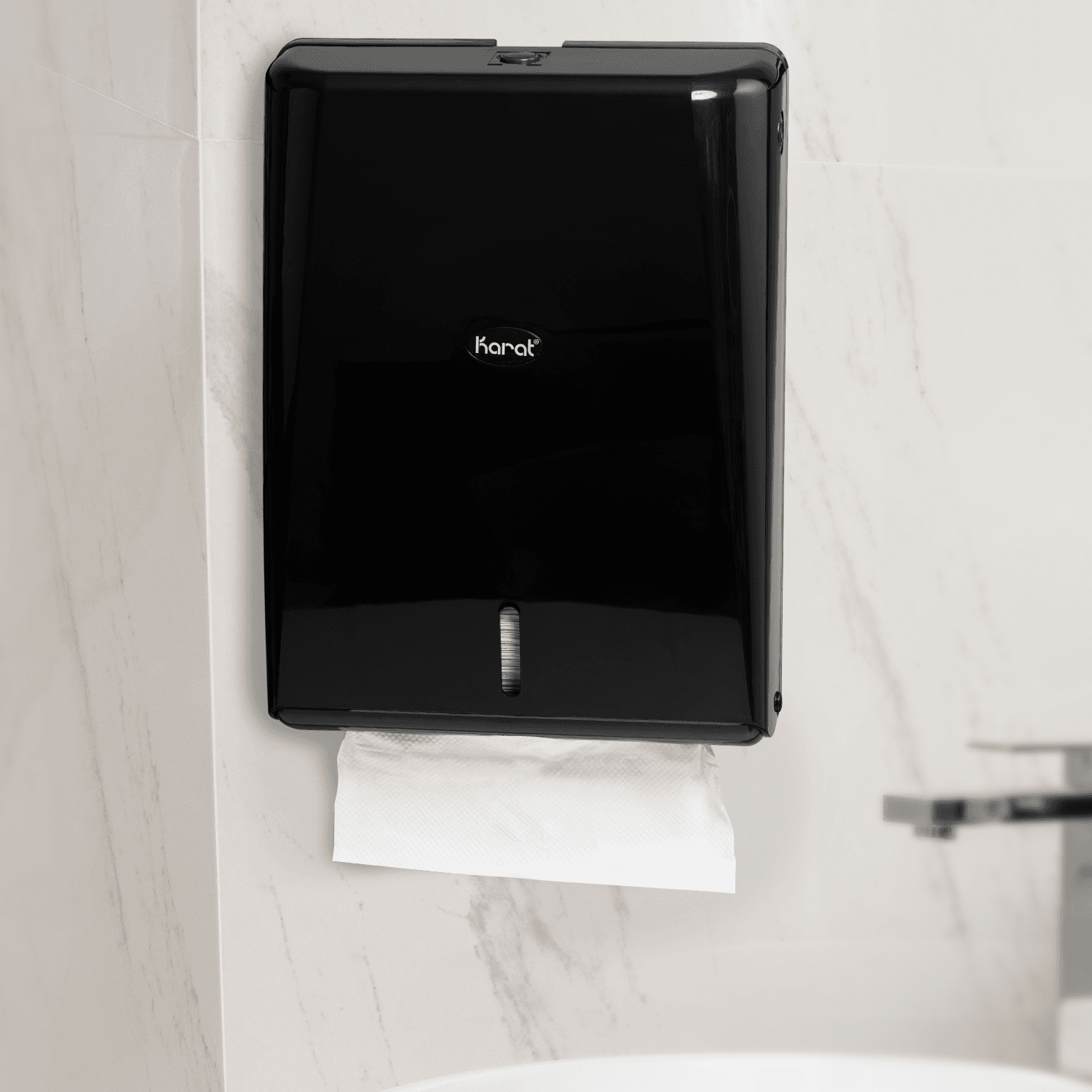Enhance the functionality and hygiene of your space with the Karat Standard Multi-Fold Dispenser. Designed with sophistication in Black and measuring 10.83”x4.53”x14.65”, this dispenser is a perfect fit for any bathroom, kitchen, or commercial setting. The sleek wall mount design not only saves valuable counter space but also complements any decor. Accompanied by matching 1Ply Multifold Paper Towels, the Karat dispenser ensures a seamless and efficient hand-drying experience for all users.