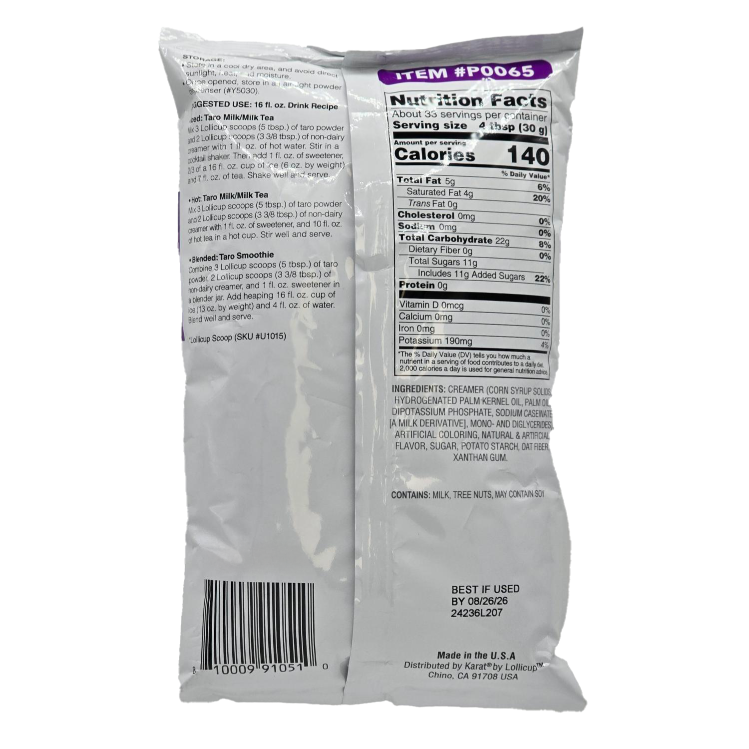 Taro is a root vegetable for its edible, starchy form. It can be a staple in some regions. The sweet and nutty flavor is a great add-on to desserts or drinks. Tea Zone Taro Powder captures the unique flavor of taro and vividly violet purple. This versatile powder mix can be used on milk teas, smoothies, blended beverages, puddings, jellies, cakes, cookies, etc.
