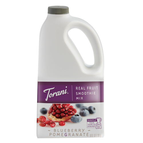 Torani Blueberry Pomegranate Real Fruit Smoothie Mix features an intense flavor of antioxidant-rich fruits like wild blueberries and pomegranates. Now in an all-natural formula with no preservatives, no artificial colors, no artificial flavoring, no caffeine, no fat, and no dairy, Torani smoothie mixes offer a fresh, real fruit taste in a easy to use pour-and-blend format.