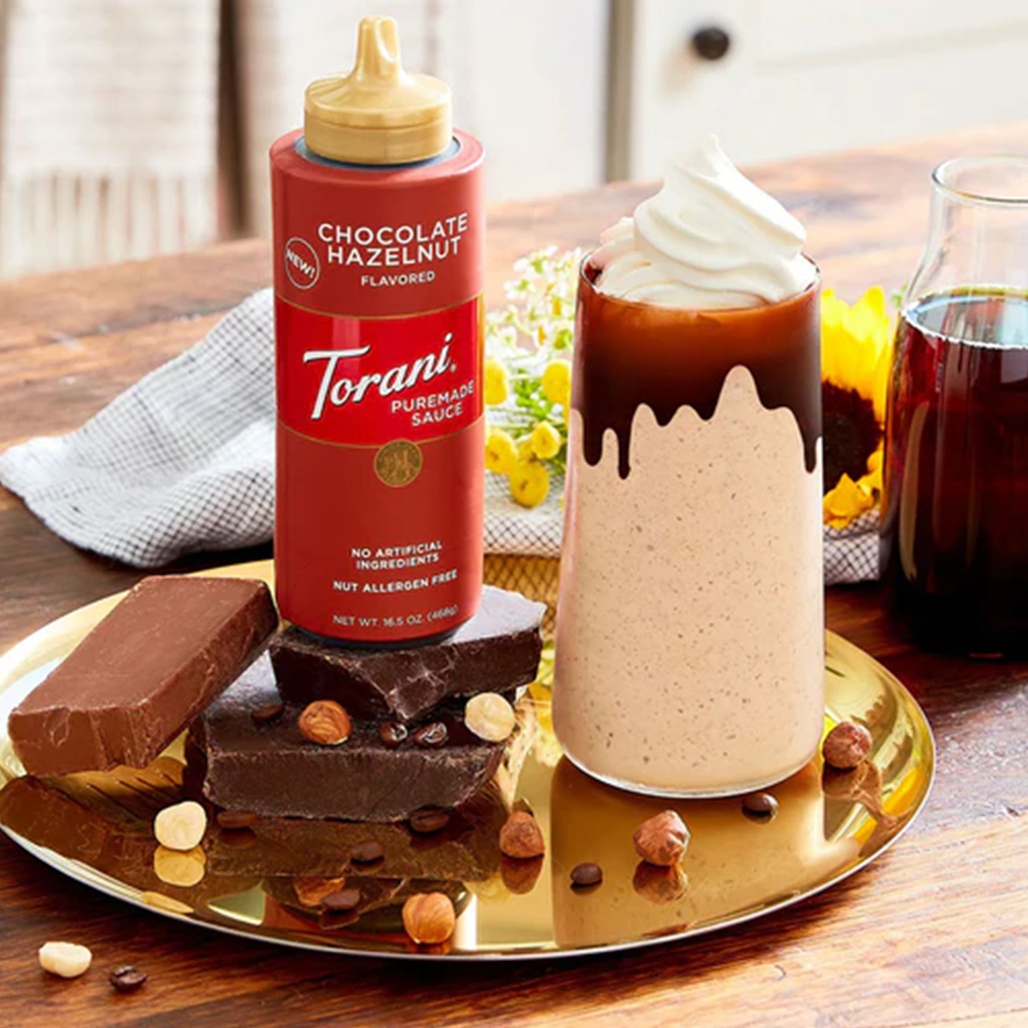 Inspired by the classic flavor combination commonly found in Italy, Torani Puremade Chocolate Hazelnut Sauce is the first nut allergen-free sauce on the market. It offers a rich, chocolatey, and nutty finish to your favorite drinks and treats, without artificial ingredients, flavors, or preservatives.