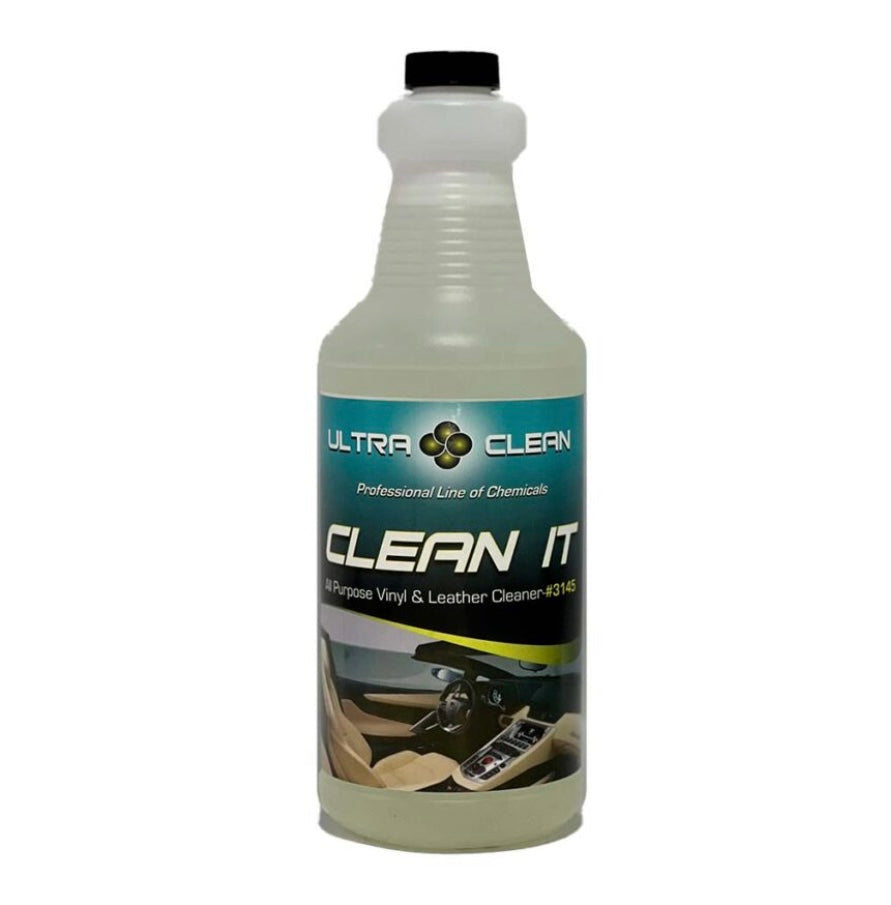 Clean it is a ready to use all-purpose cleaning solution that safety cleans and lifts away dirt and oil build-up on all types of leather and vinyl surfaces.