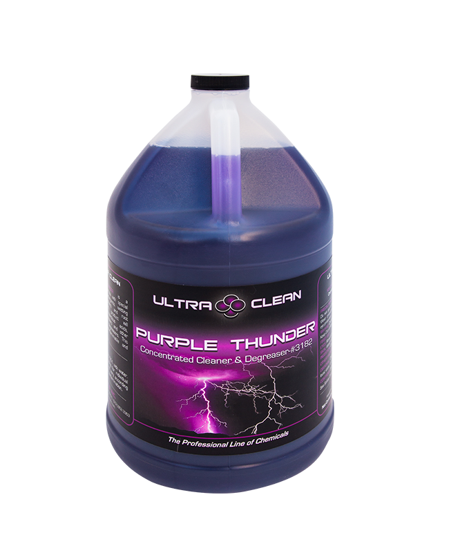 PRUPLE THUNDER is a heavy duty degreaser with our new multiphase formula with special surfactant, wetting agents, emulsifiers and detergents to create an outstanding concentrated degreaser. Power Blast is non-flammable and biodegradable. This product out performs most acidic style cleaners, solvent degreasers and other water soluble degreasers.