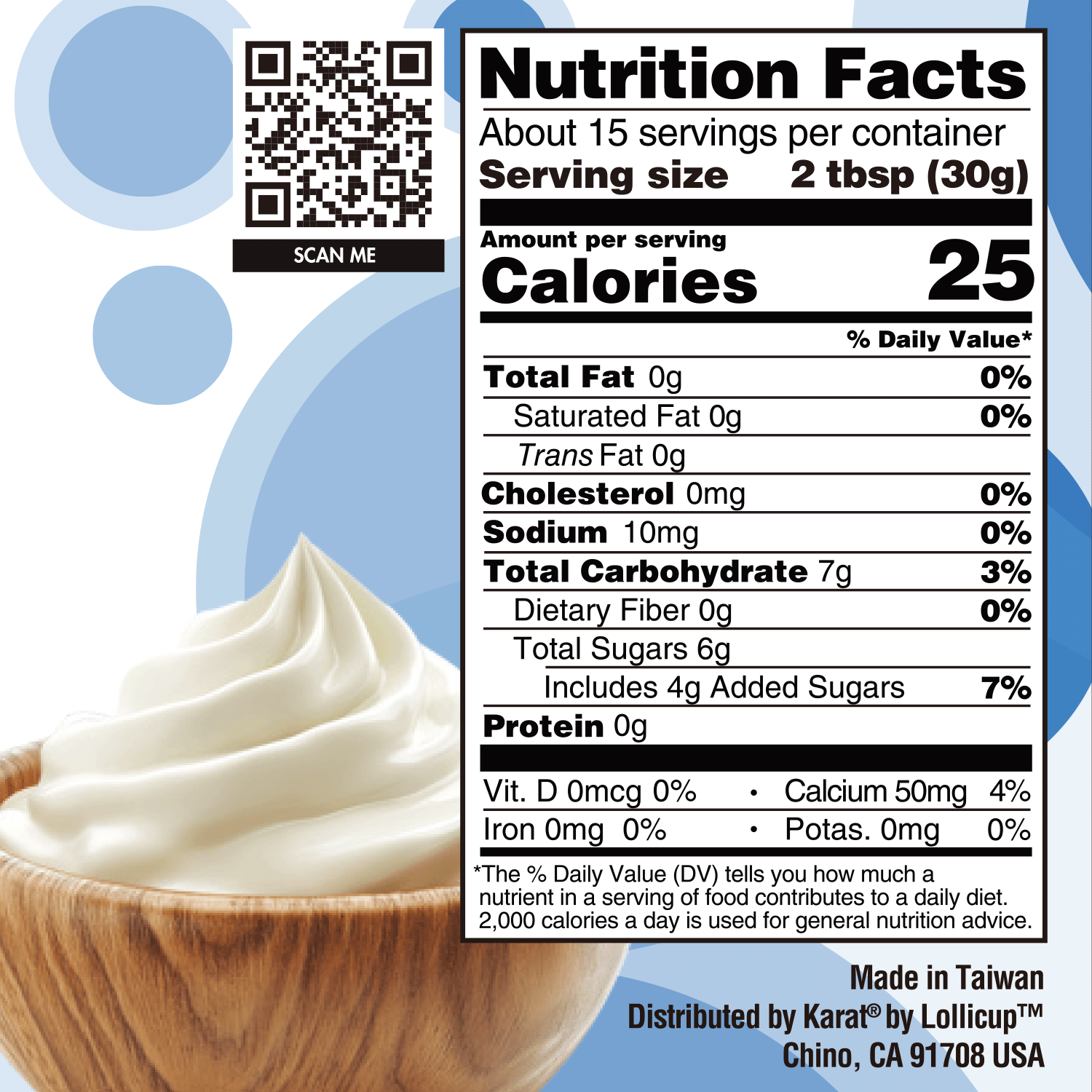 Ingredients: Water, Fructose, Artificial Yogurt, Starch, Calcium Lactate, Seaweed Extract, Flavor, Malic Acid, Potassium Sorbate